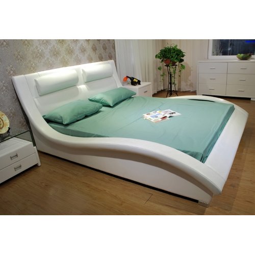 Greatime B1141 Wave Like Shape Upholstered Modern Platform Bed King White